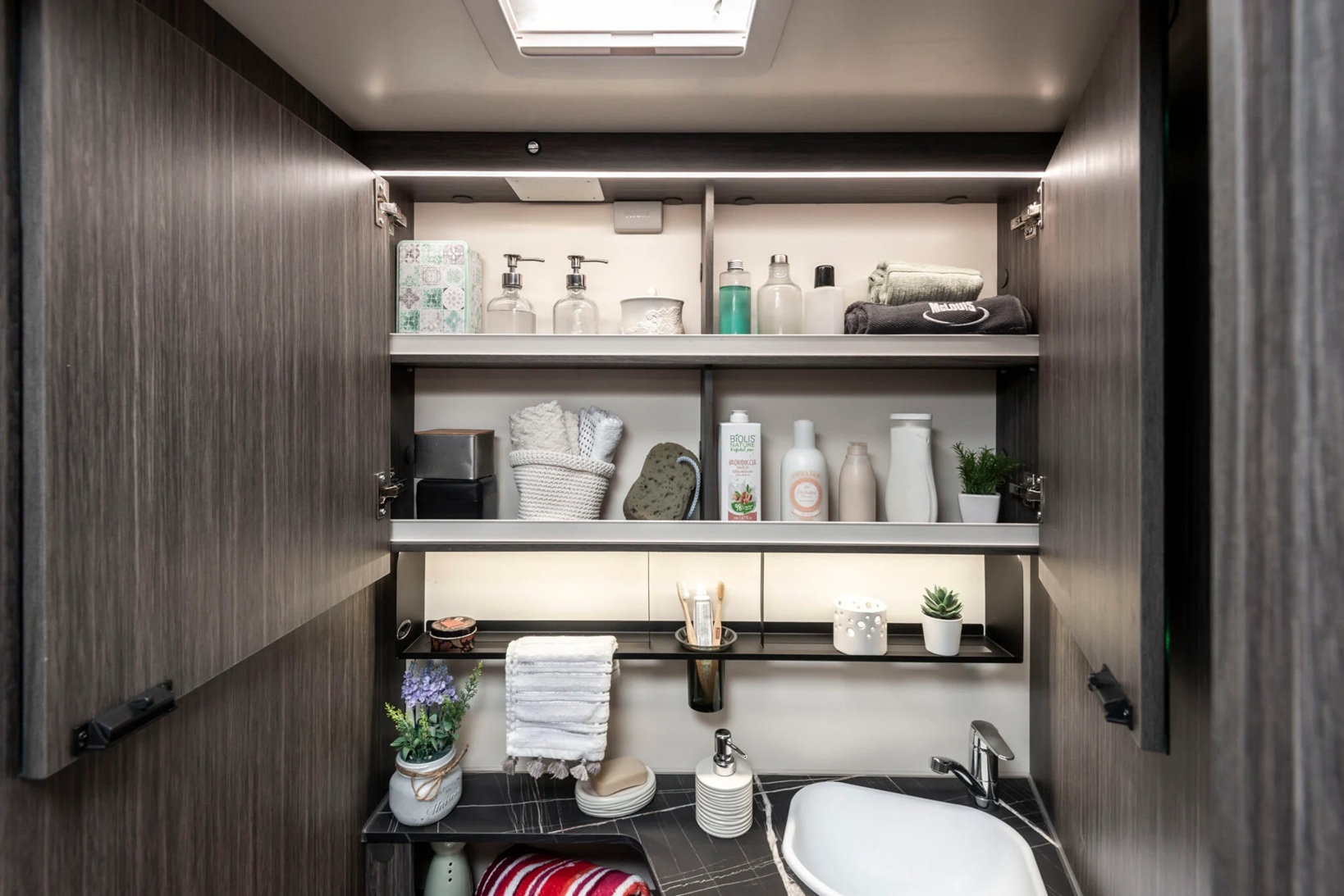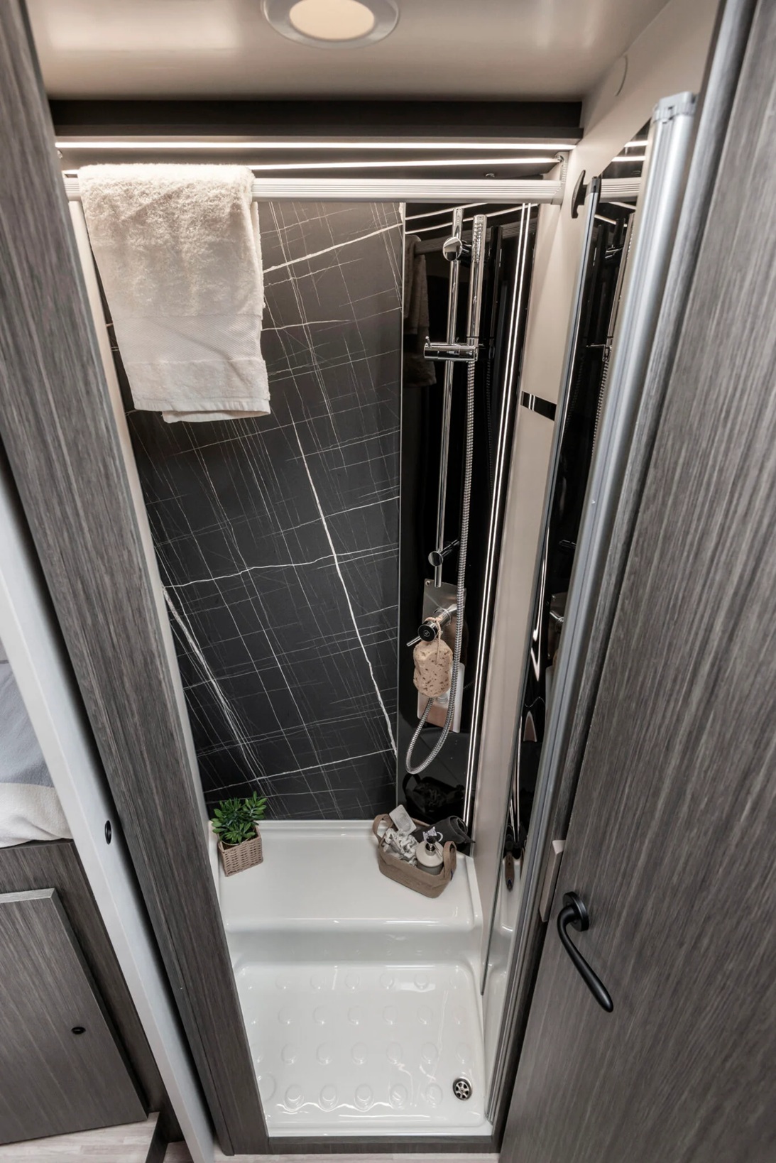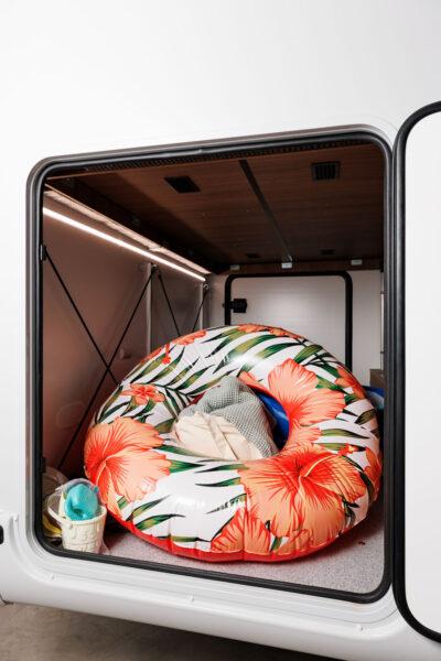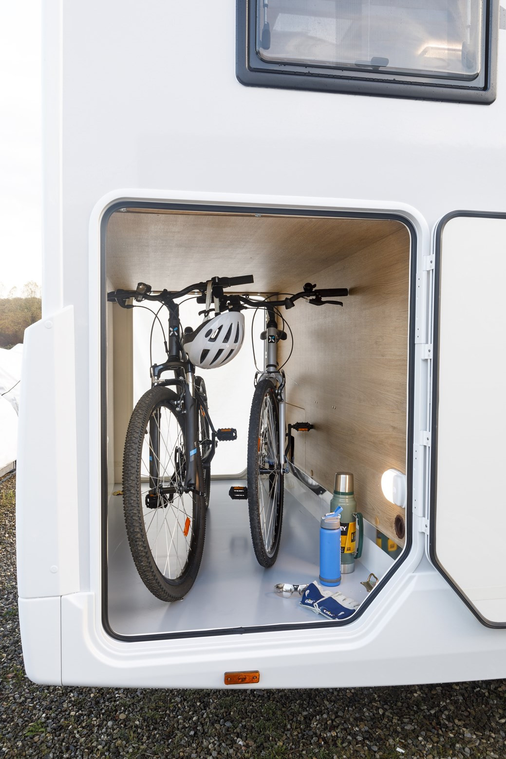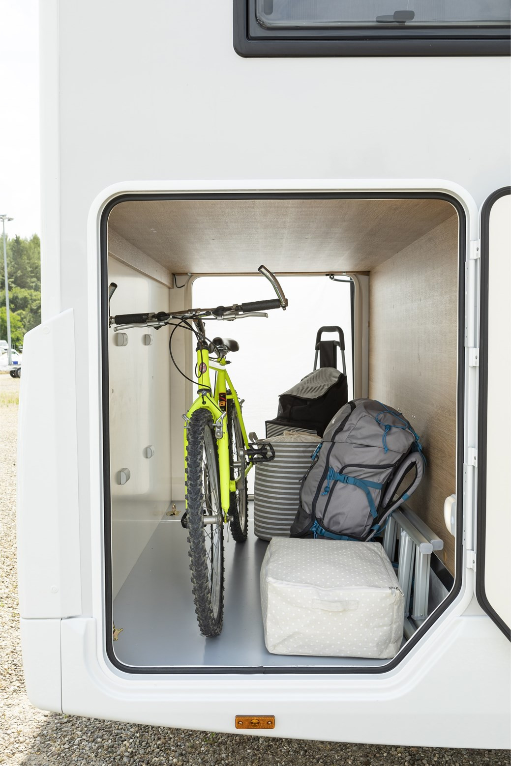 - Kit Viaje (batería célula, 2 calzos, cable 220V, manguera agua, extintor, chaleco, 2 triángulos, líquido WC)