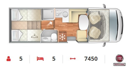 Zefiro 284 Int: Camas Gemelas. Comedor en curva. 5 plazas