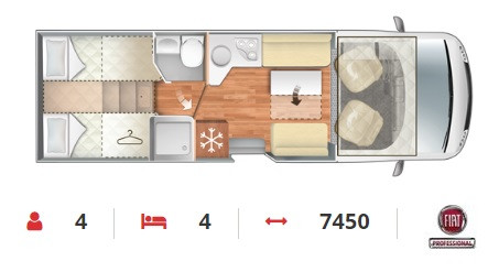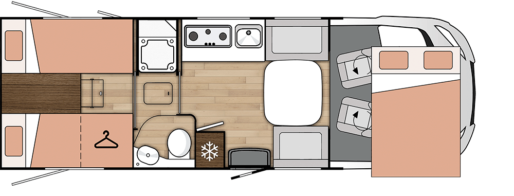 Zefiro 267 Int: Cama Central. Comedor Face to Face. 4 plazas