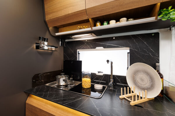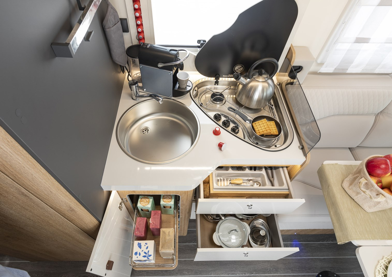 - Nuevo fregadero oculto y placa de cocción de 3 fuegos con encendido eléctrico