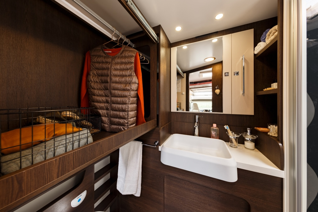 Lujosa autocaravana para parejas que quieran ir con todo lujo de comodidades en una autocaravana compacta perfilada. Amplía zona de armarios para que quepa todo y un amplio comedor para juntaros todos con capacidad hasta 6 personas.