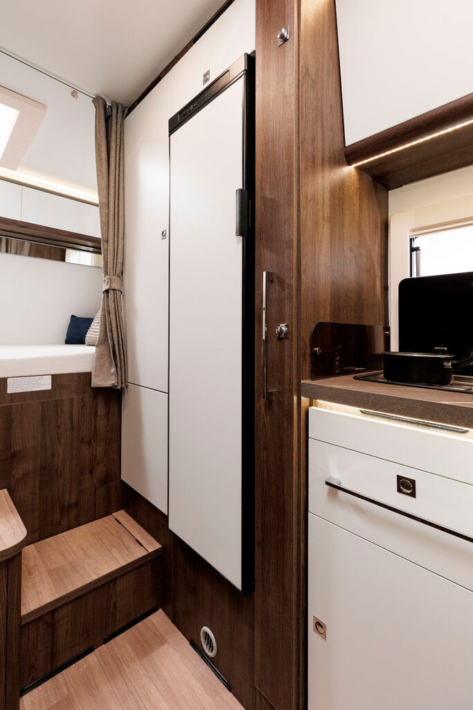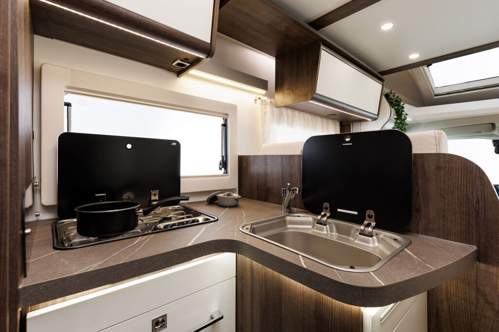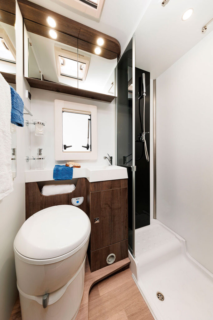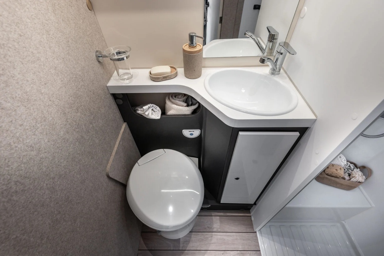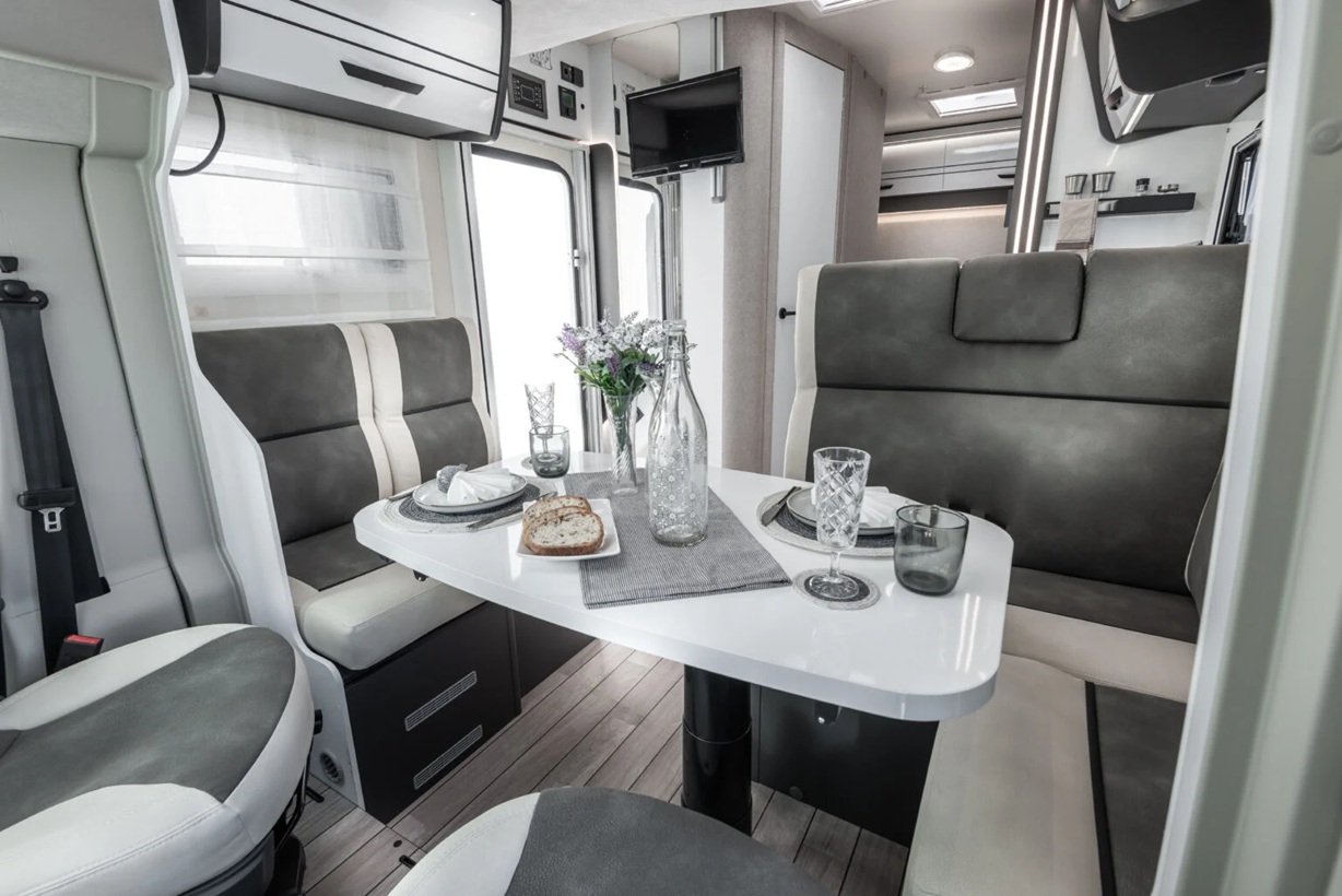 Dos camas dobles una sobre garaje y otra abatible sobre el comedor. Viaja con toda comodidad y disfruta de una zona de estar con asientos cabina giratorios, cocina con la comodidad de un banco en L y no te preocupes del cuarto del ámplio cuarto de baño.
