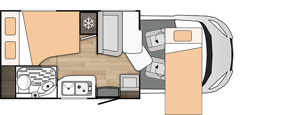 Autocaravana con cama francesa con máximo aprovechamiento por menos de 6 metros. La autocaravana más corta del mercado.