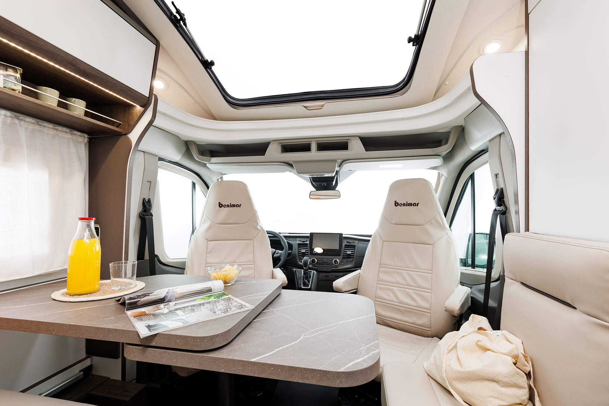 - Asientos conductor y pasajero reclinables, giratorios, regulables en altura y con 2 reposabrazos