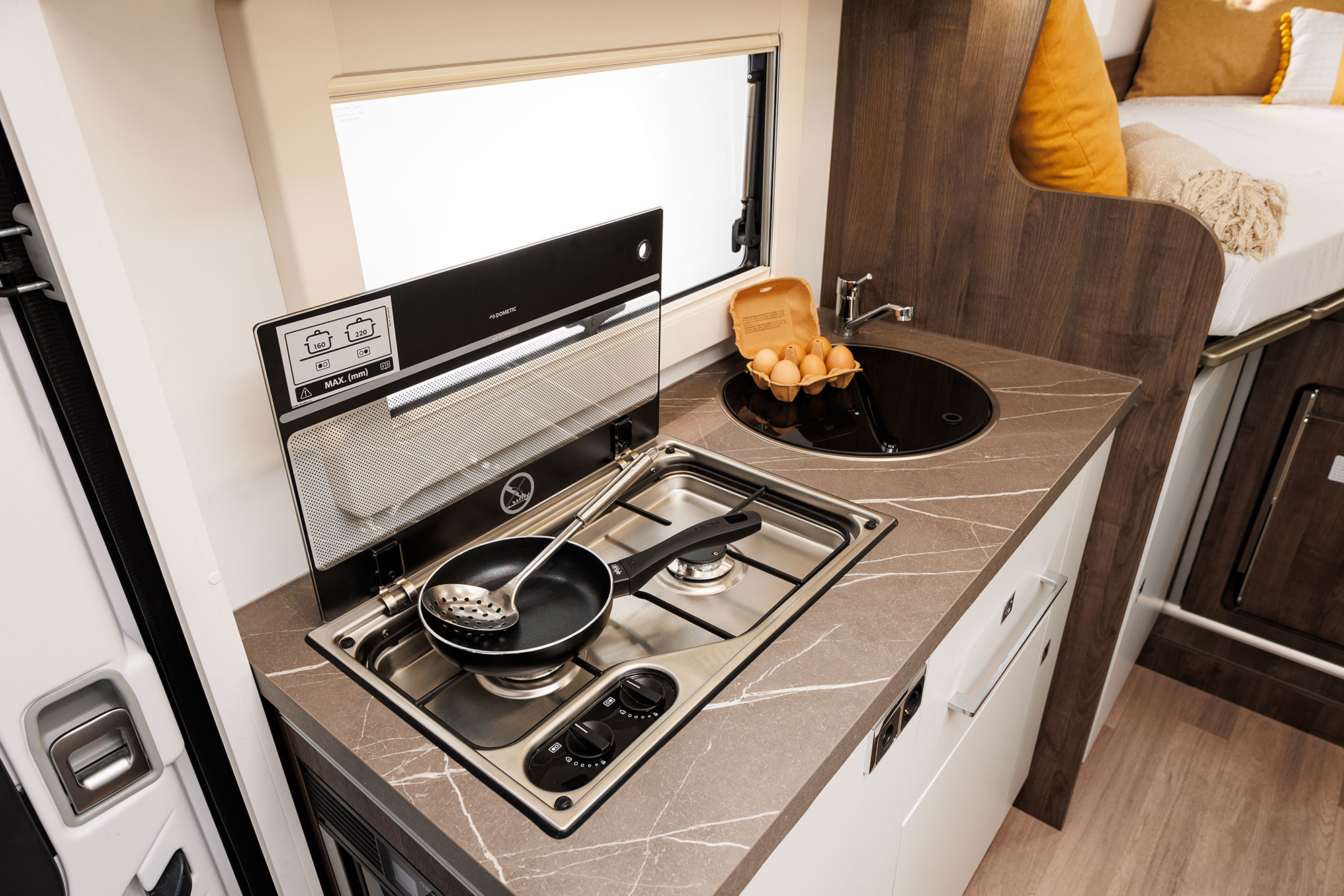 - Fregadero y cocina 2 fuegos encastrados con encendido eléctrico