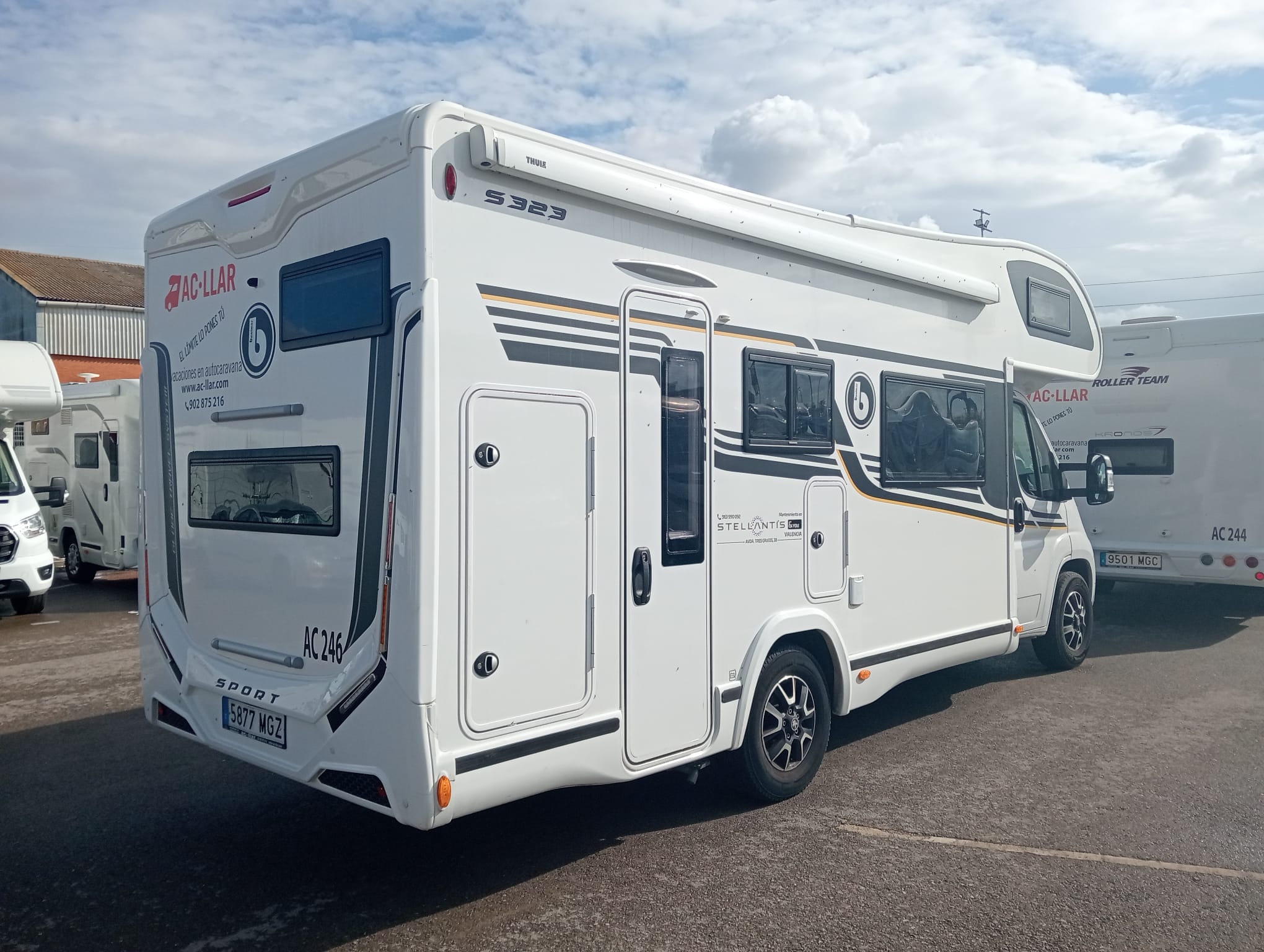 Autocaravana Benimar Sport 323 de ocasión procedente de nuestra flota de alquiler, con garantía AC-LLAR por un año, ideal para familias o grupos que buscan espacio, versatilidad y confort, sin renunciar a maniobrabilidad. Equipada con toldo, panel solar, dos baterías auxiliares, tv + antena, conversor de 300w y retro cámara. ¡Lista para viajar!