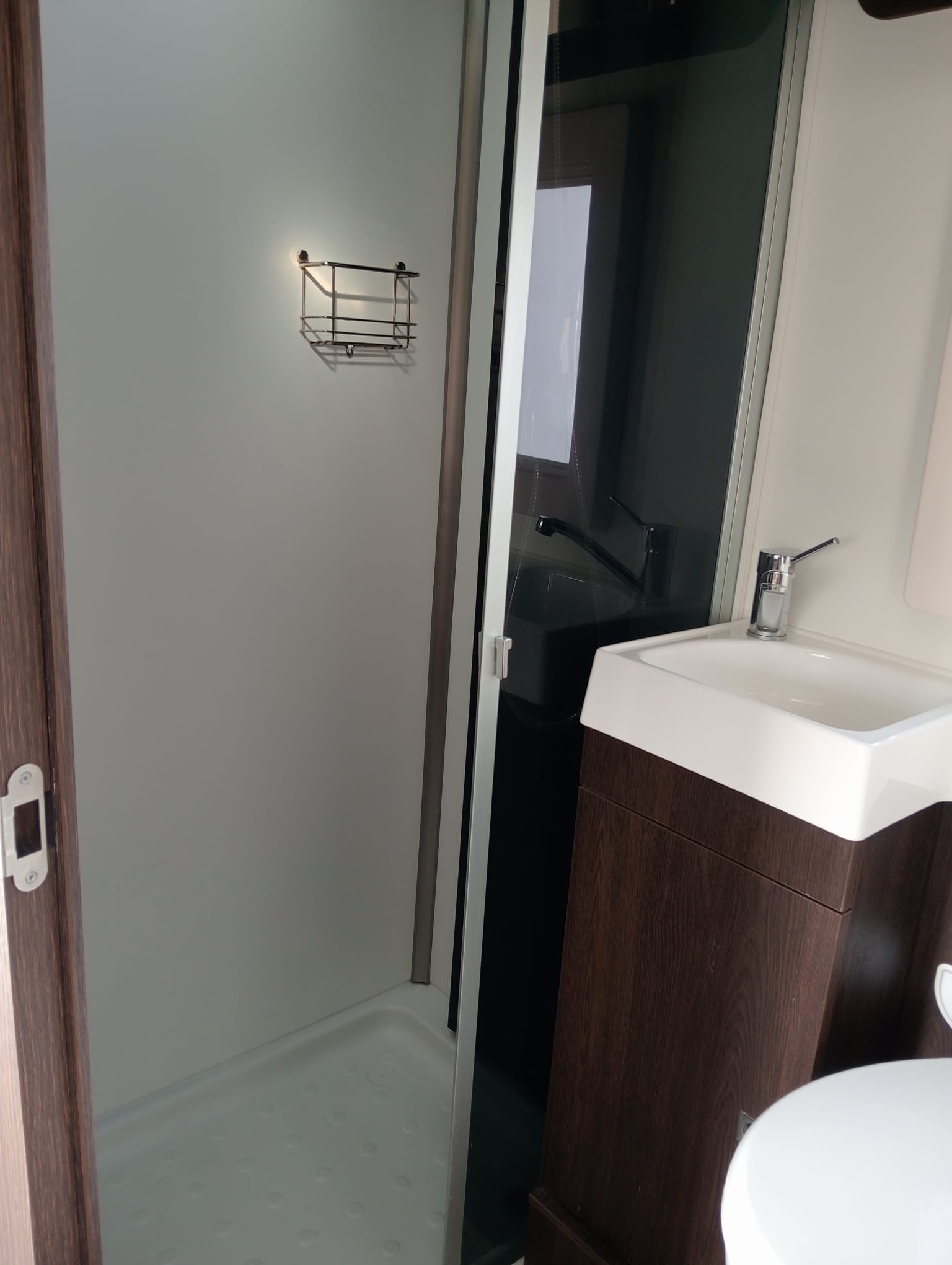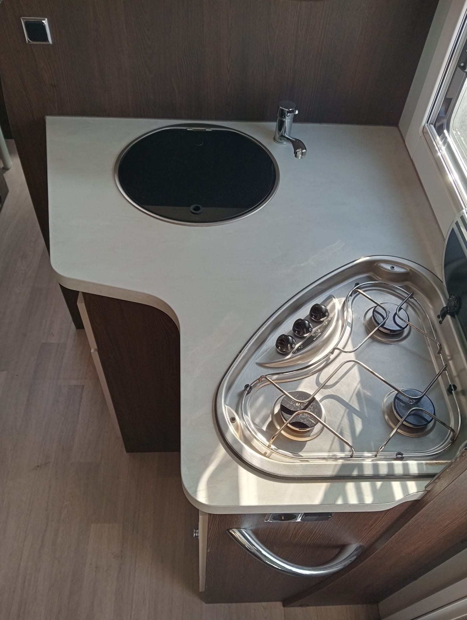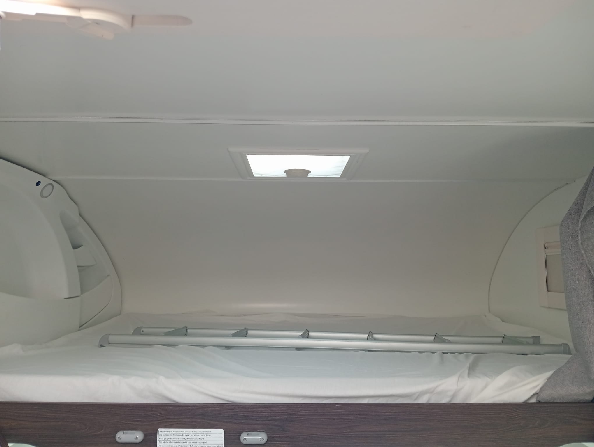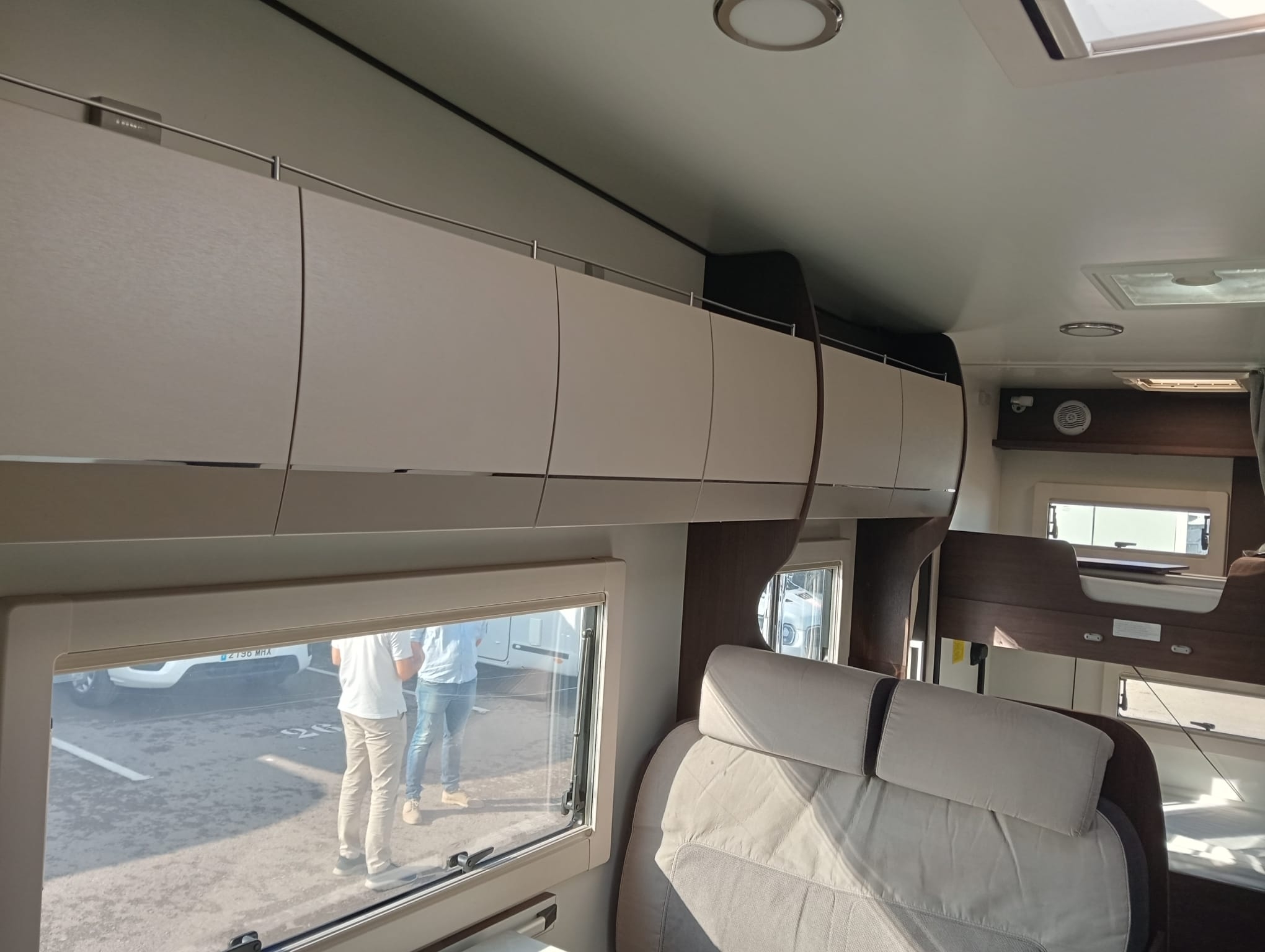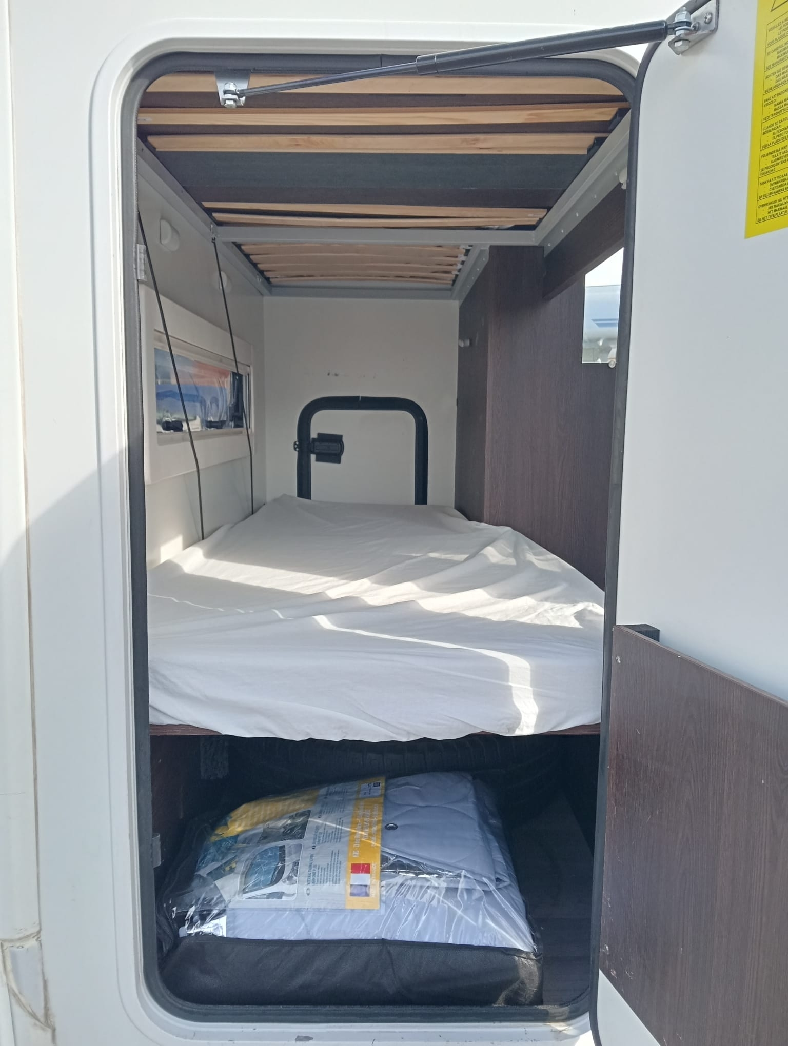 Distribución: Cama sobre cabina, 2 literas individuales, salon transformable en camas.