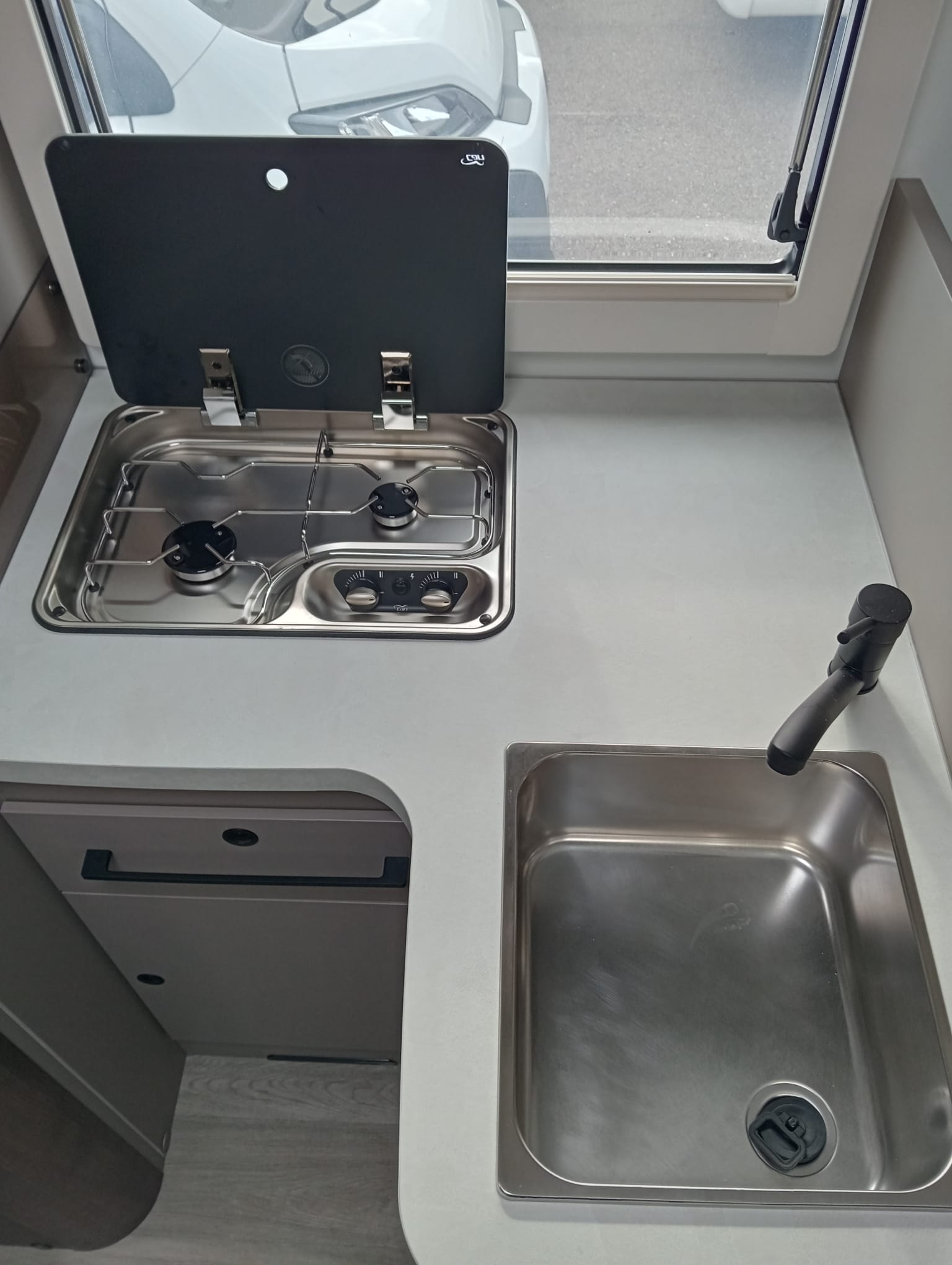 - Fregadero y cocina 2 fuegos encastrados con encendido eléctrico