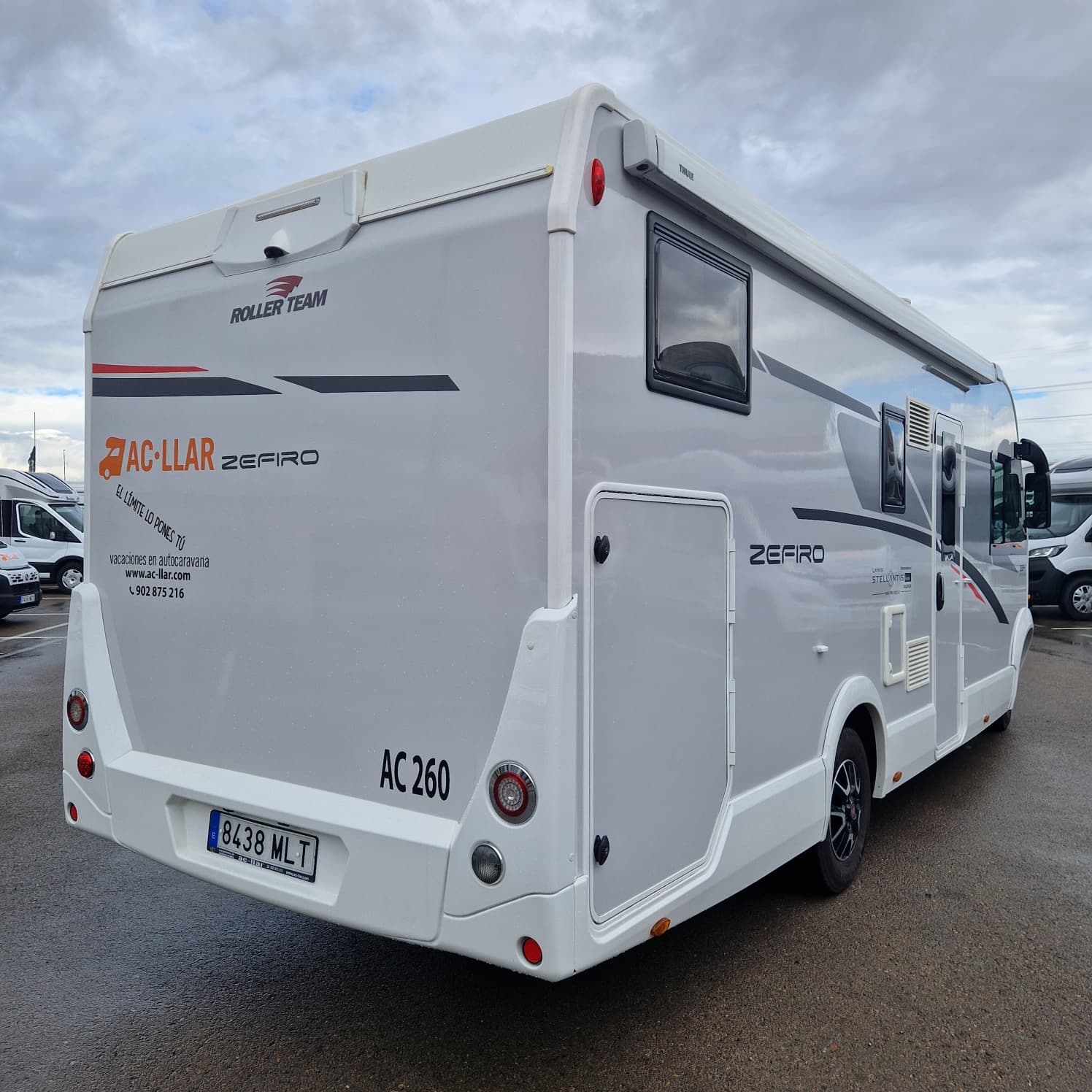 EXTERIORES • Puerta de entrada XL con ventana fija y mosquitera • Ventanas Seitz • Techo panorámico OpenSky (de serie en semi-integrales) • Espacio rebajado para almacenamiento de las bombonas de gas. • Garaje XXL con capacidad de carga máxima de 300 kg • Peldaño de acceso integrado.